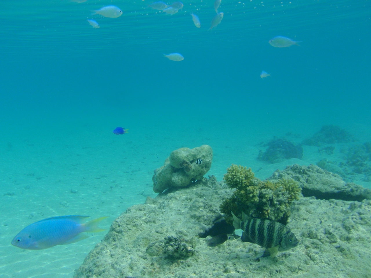 海に入ると、すぐにたくさんの熱帯魚と生きたサンゴ礁に出会うことができます。
