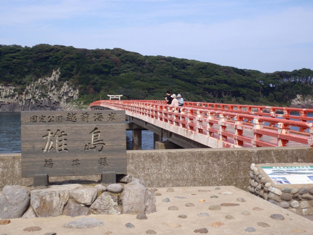 東尋坊の崖から飛び降りた人が潮の流れにのってたどり着くのがこの島だそうで・・・