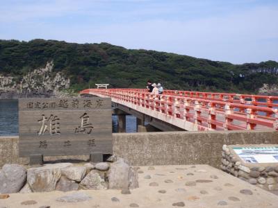 雄島へは赤い橋がかかっていて、徒歩で島に渡ることができます。