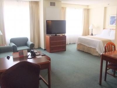 ?部屋が広い。3人掛けソファー、ダブルサイズベッド、2人用ダイニングテーブル、仕事用のテーブルがついてシングル1泊$80〜$100は安いと思います。