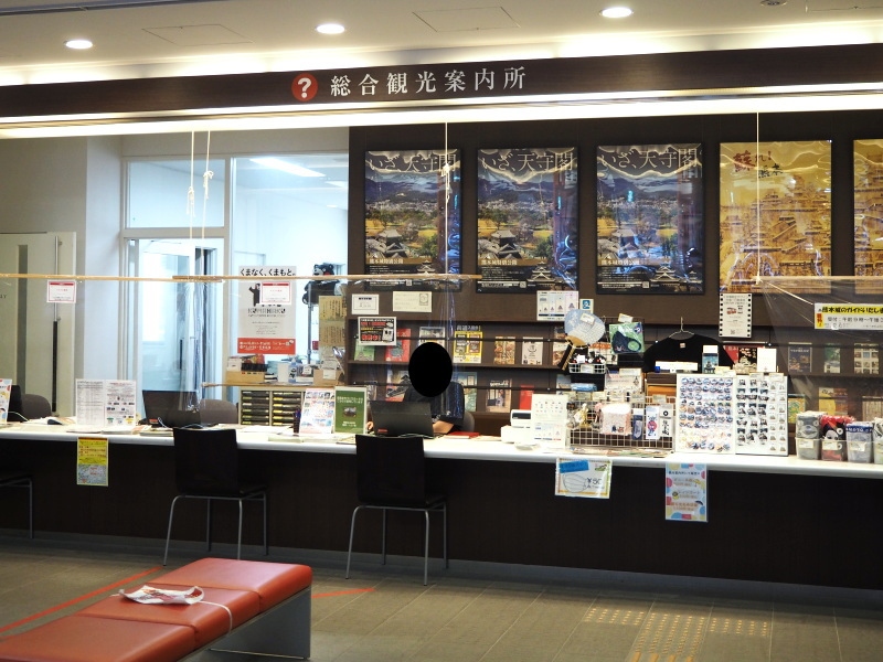 桜の馬場 城彩苑には総合観光案内所が併設されています。熊本城以外のおすすめな観光スポットや交通手段など、カウンター越しに相談ができます。熊本市の観光パンフがたくさん用意されていて、熊本市以外の観光パンフも置いてあります。観光に困らない情報が収集できるので便利です。