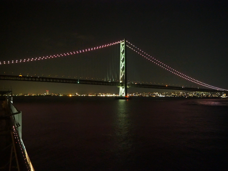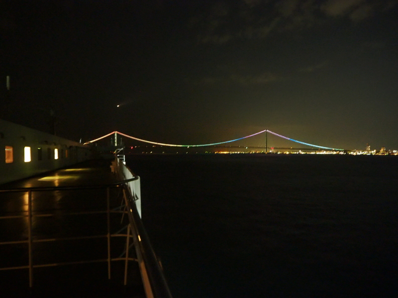 時間帯も比較的早かったので甲板には多くの人がいて、きれいにライトアップされた明石海峡大橋を見ることができました。- 旅行時期