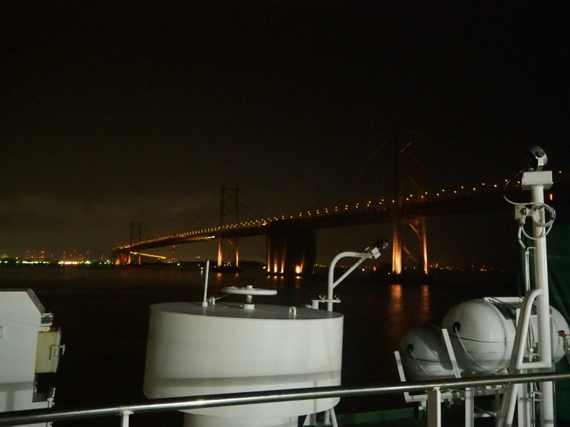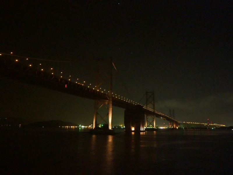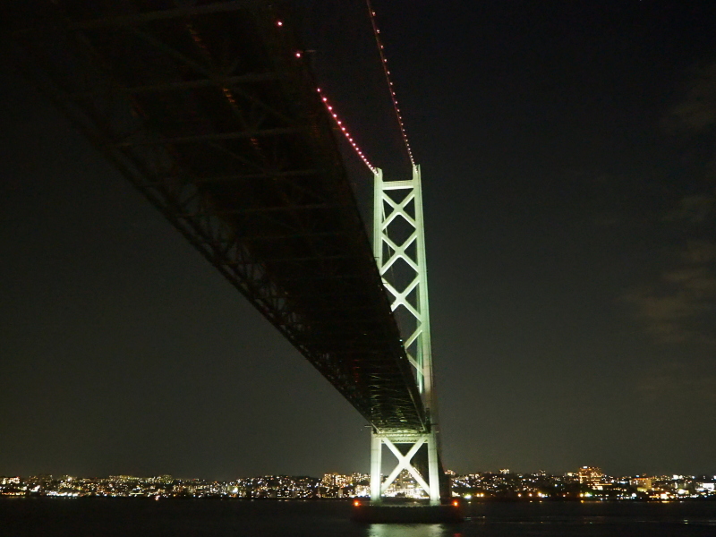 夜の21:05頃に最初の明石海峡大橋を通過しました。