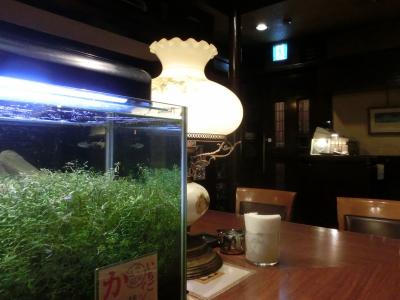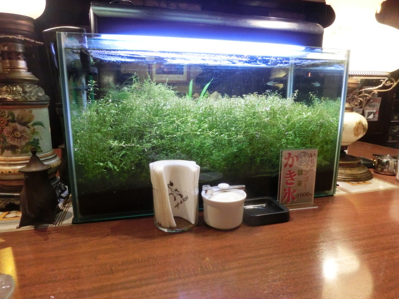 テーブルの中央には水槽が置かれていたので目隠しになり、居心地は悪くなかったです。