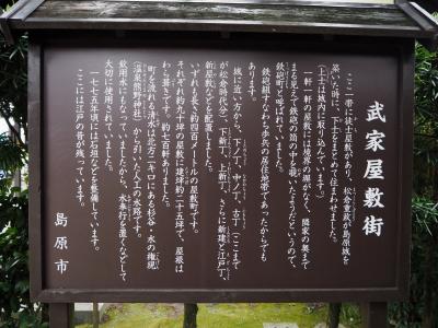 島原城の観光を終えた後、武家屋敷に行ってみました。小さな水路が真ん中を流れる真っすぐ伸びた道には、数件の武家屋敷が無料で見学できるようになっています。山本邸、篠塚邸、鳥田邸の中に入ってみました。昔ながらの造りと、その時代の生活が感じ取れました。ただ蝋人形がちょっと不気味でした。
