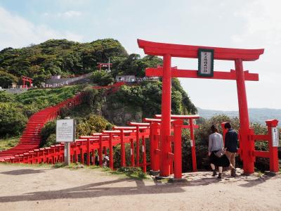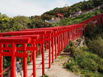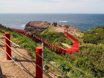 元乃隅稲成神社は、海岸まで続く赤い鳥居が特徴的です。
