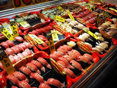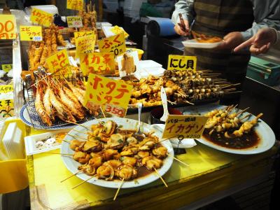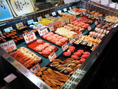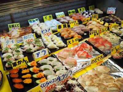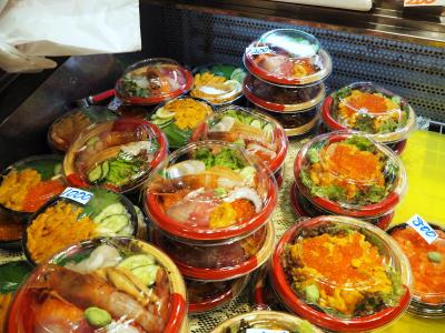 市場内は色々なお寿司や丼ぶりものが並び、はっきり言ってどれを選んだら良いか分からなくなるくらいでした。- 旅行時期