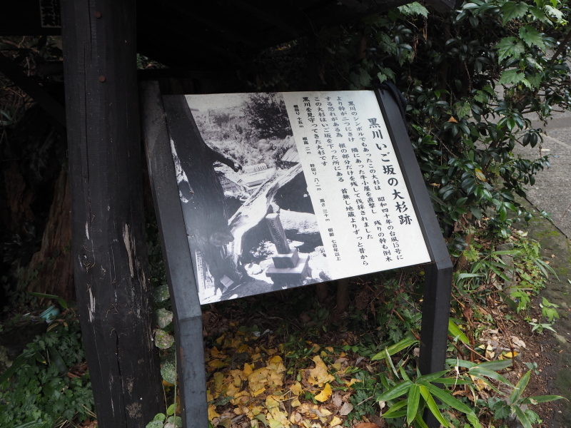 いご坂を上っていると『黒川いご坂の大杉跡』という立て看板を見つけました。
