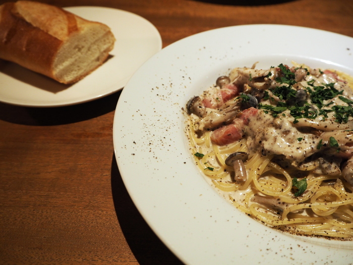 クリーム系のパスタとローストビーフ丼を注文してシェアして頂きました。