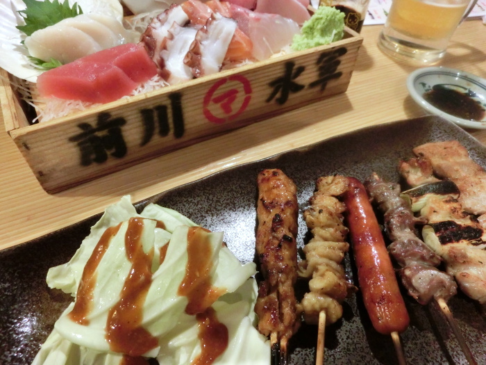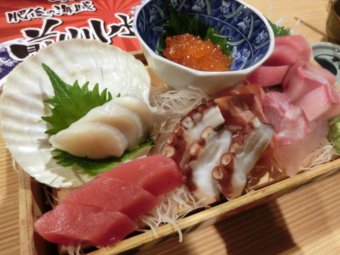 ミニサイズのとろ箱に盛られたお刺身は、新鮮でしかもお安い。