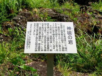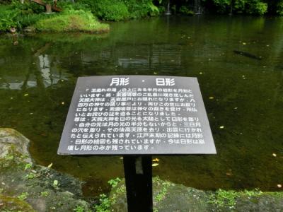 おのころ池から玉垂の滝を見上げた所にあるのが『月形 日形』です。