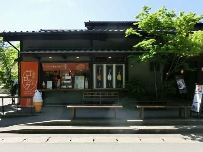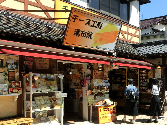 由布院の観光地には、飲食店、土産店、観光施設などが軒を連ねています。