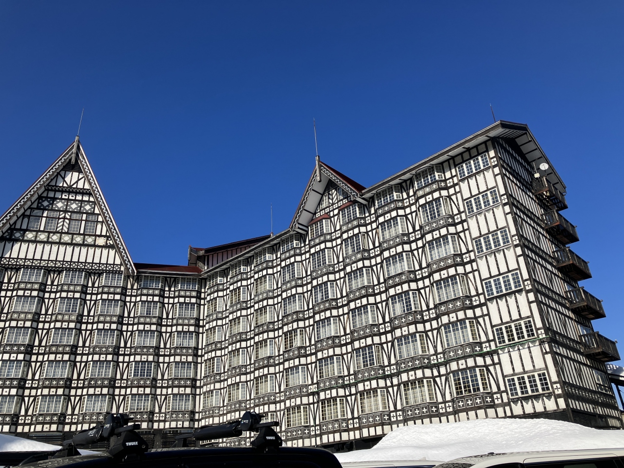 駐車場から見たホテルの大きさは圧巻です。全体が見えないほど大きいホテルでした。