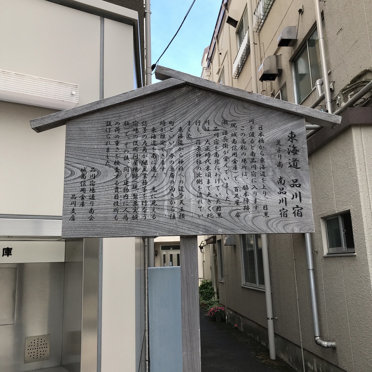 品川駅から北品川駅に向かって10分ほど歩くと旧橋の親柱にであえます。