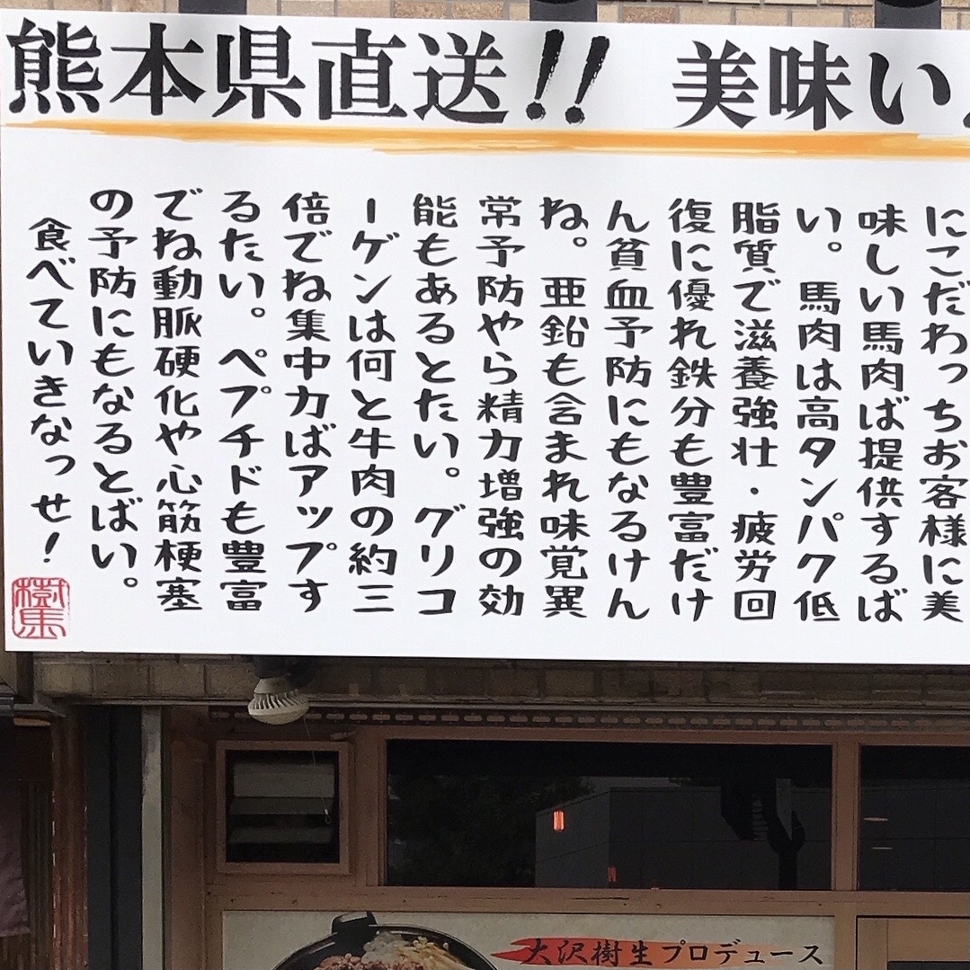 熊本県から直送した馬肉が味わえるというので訪れました。