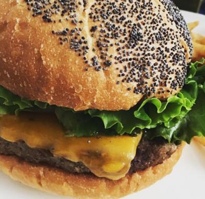 バンズは表面のケシの実が香ばしいカイザーロール。