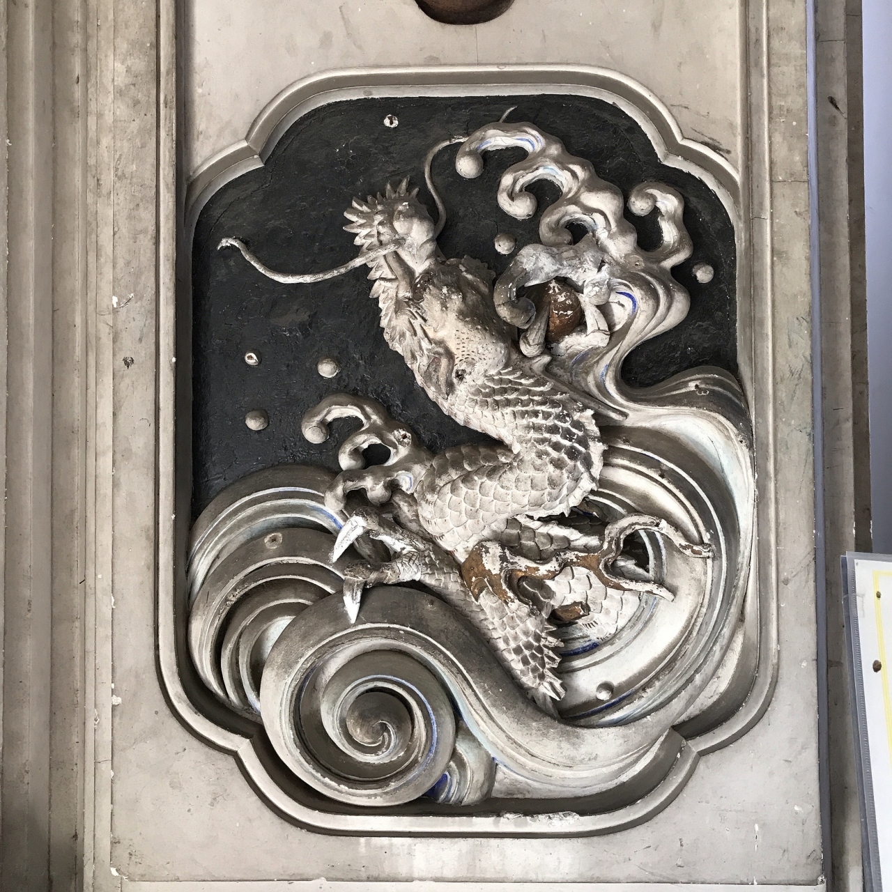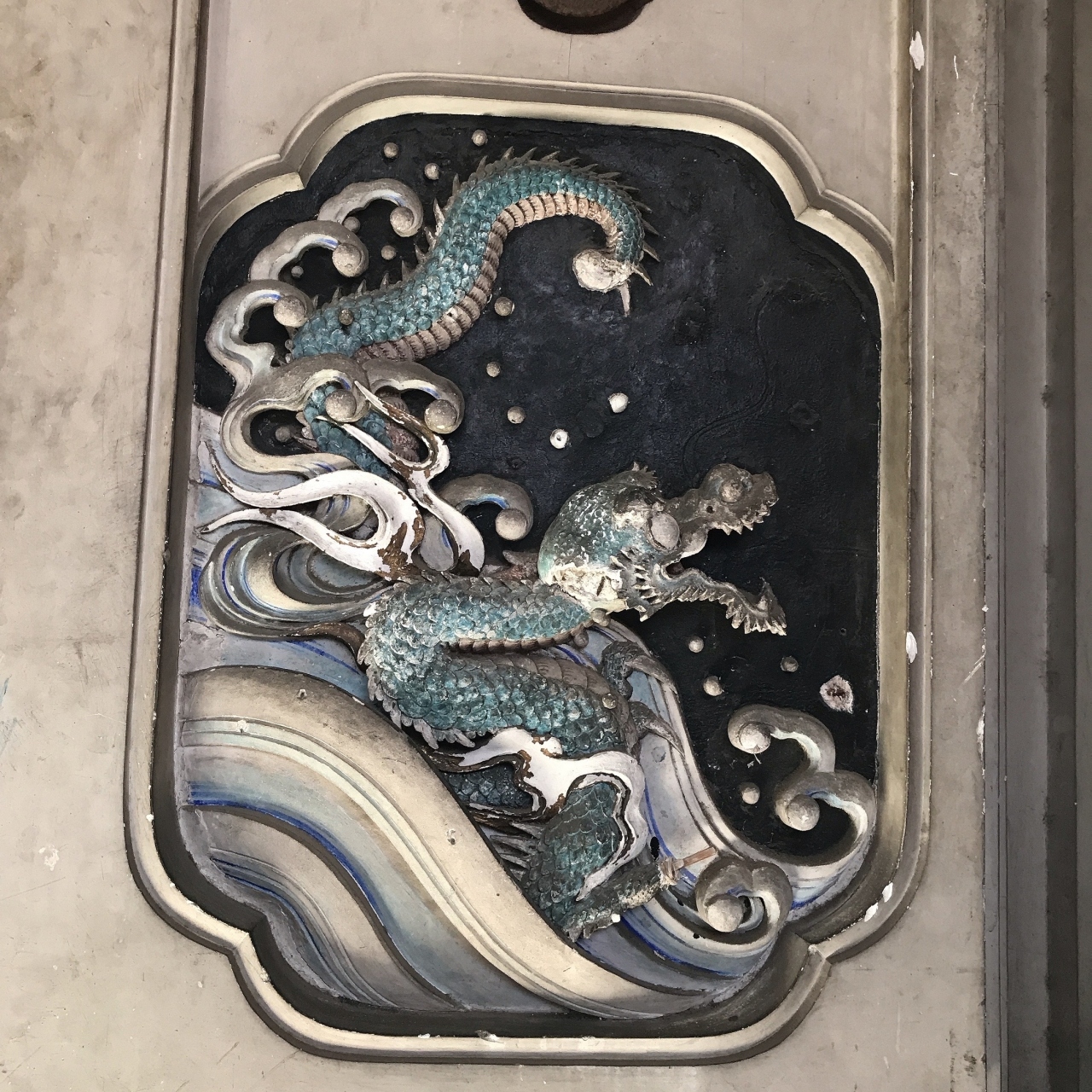 母家の吹き抜けの梁が圧巻です。また、道具蔵の龍虎の鏝絵が当時の栄華を垣間見ることができました。