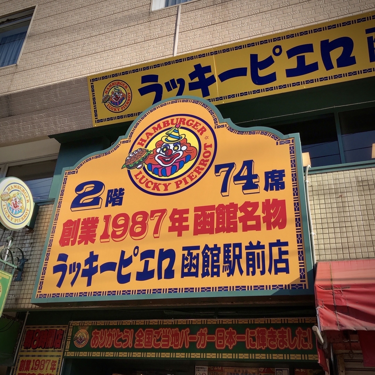 函館B級グルメの一角。函館観光名所の先々でラッキーピエロに出会うことができました。