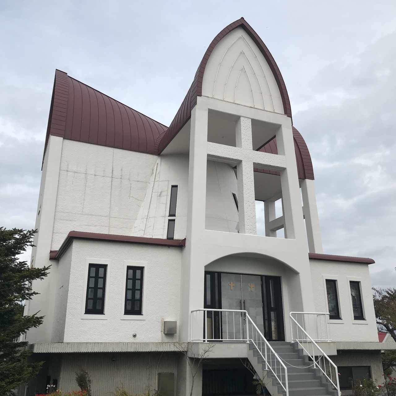 屋根だけでなく、十字架をあしらった外壁(枠?)など特徴的ながら