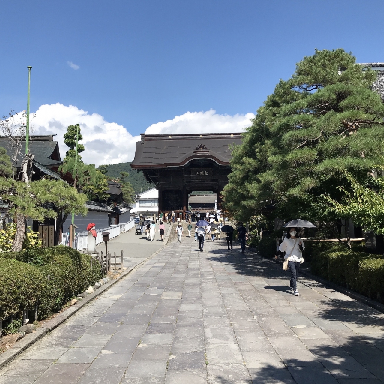 長野駅から20分ほど歩きますが、まっすぐ伸びる参道には様々なお店が立ち並びます。