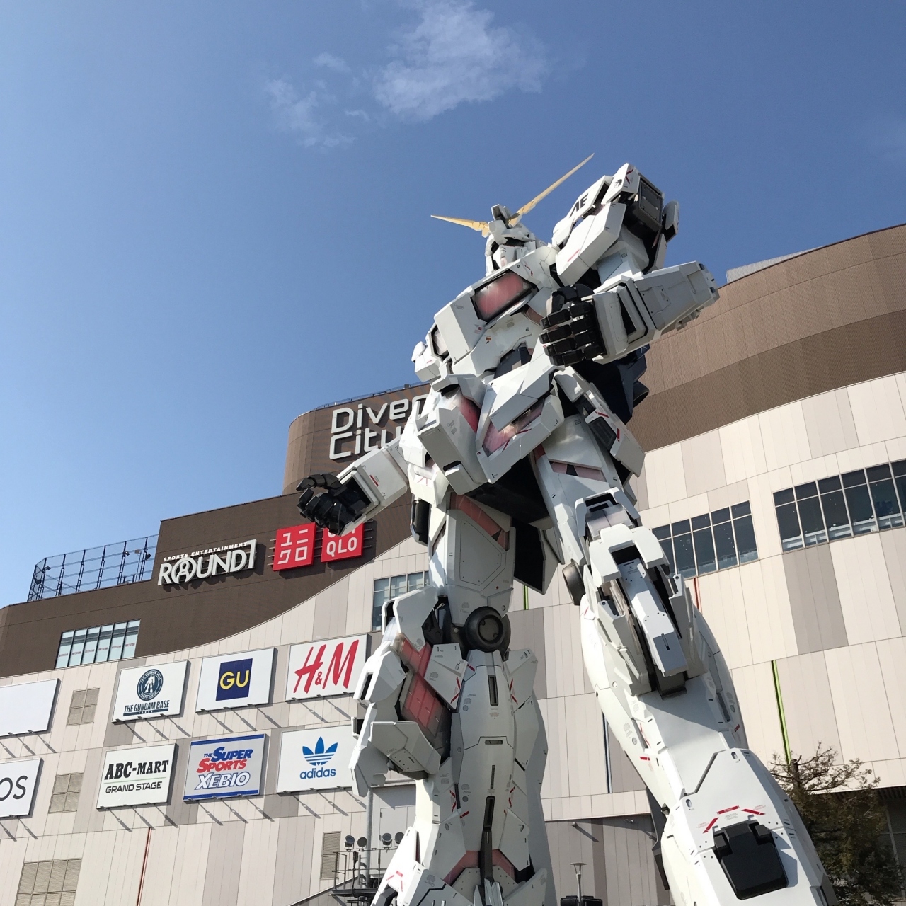 とても大きなガンダムがお出迎え。こちら定刻で動きます。