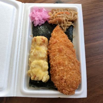 のり弁を注文。揚げたての白身フライ美味しかったです。醤油とソースそれぞれ添えてくれるのは嬉しいですね。- 旅行時期