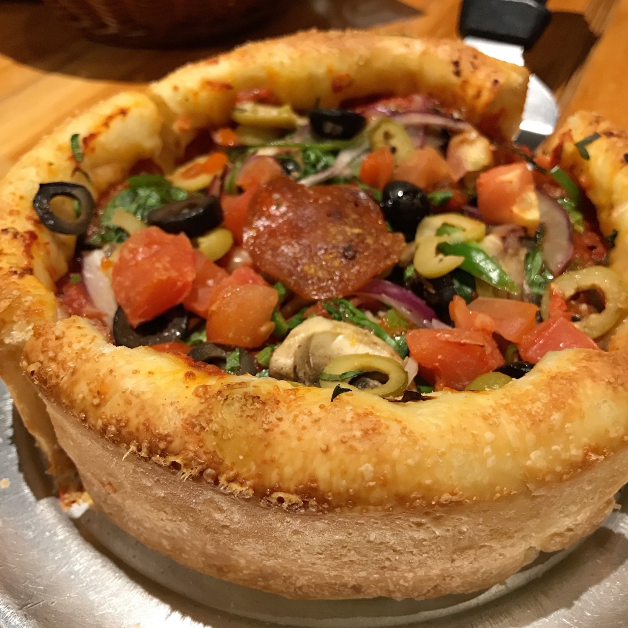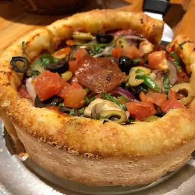 お目当てのシカゴピザは食べ応え抜群、具材たっぷりジューシーでとても美味しかったです。- 旅行時期