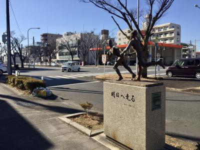第一京浜にかけられた歩道橋のたもとに襷をつなぐランナーの像がありました。