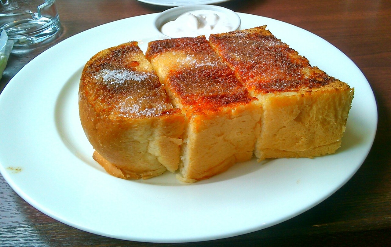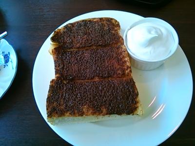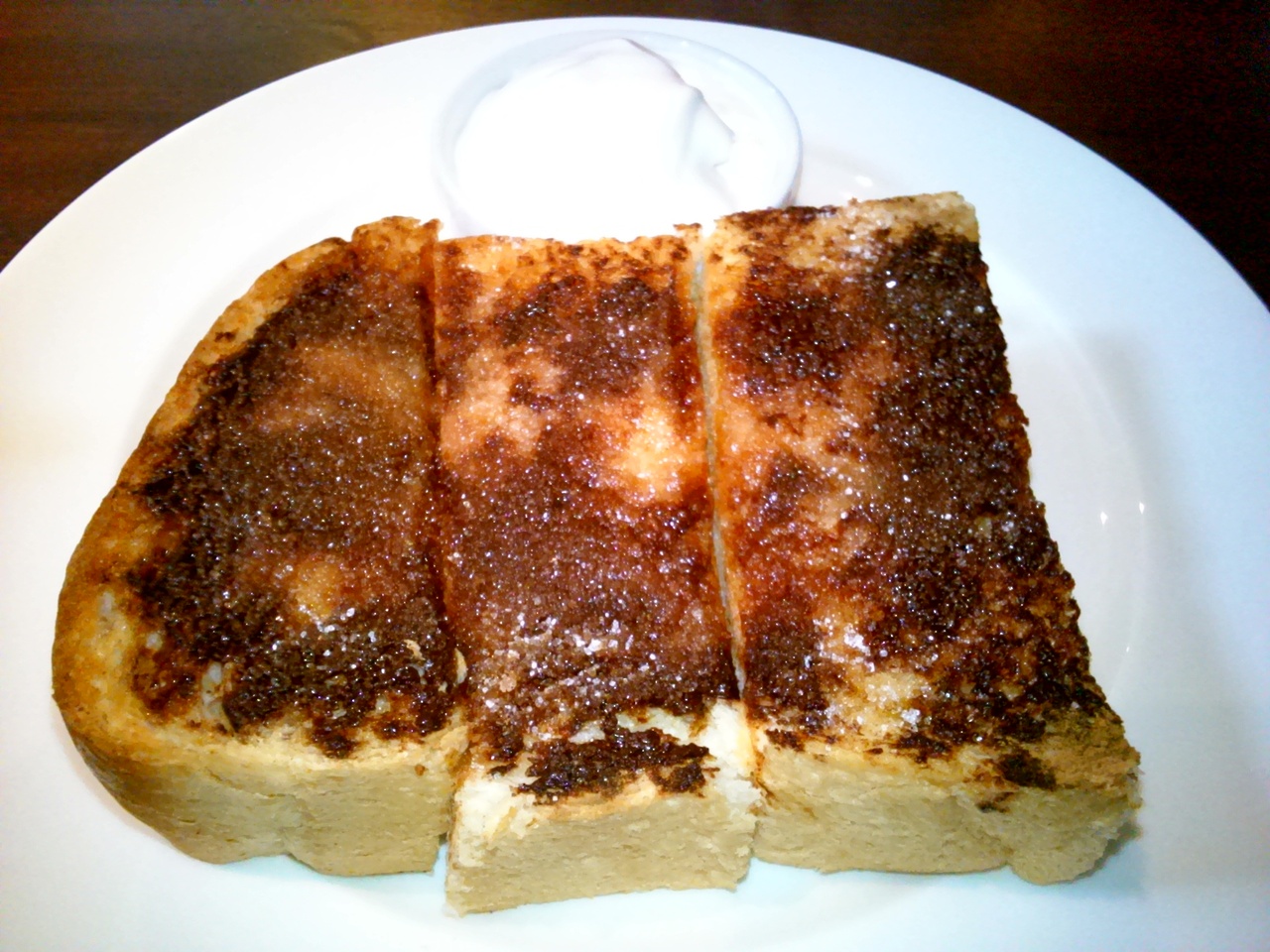 きな粉トーストも美味しい。お餅を挟んでトーストしてあります。
