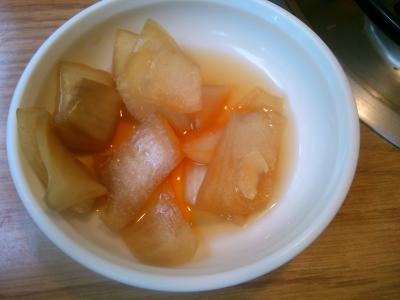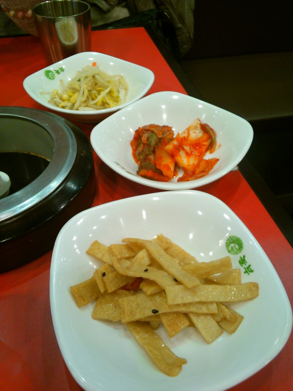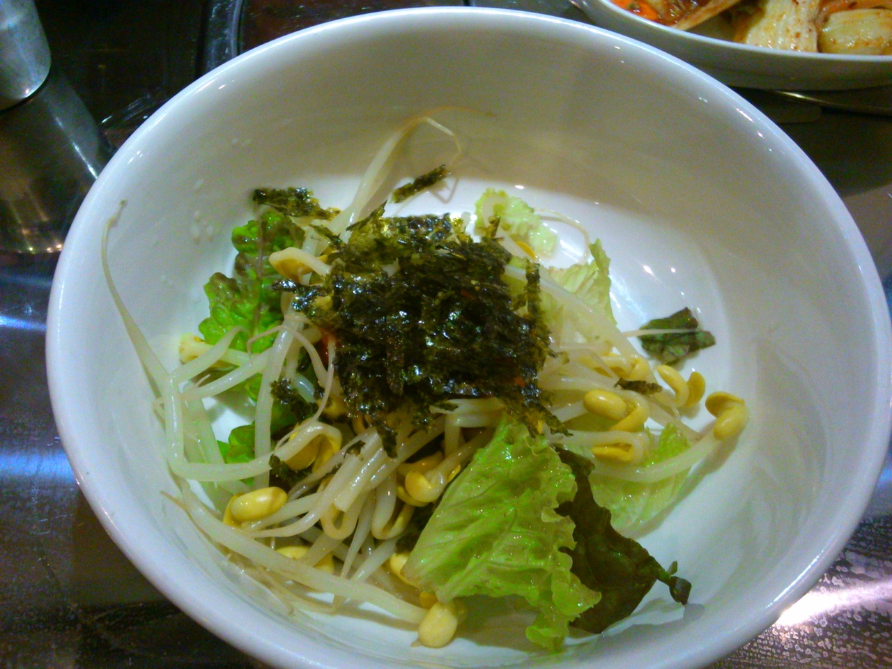 豆もやしナムル、キムチ、オデンの短冊切り。おかずはどれも美味しかったです。