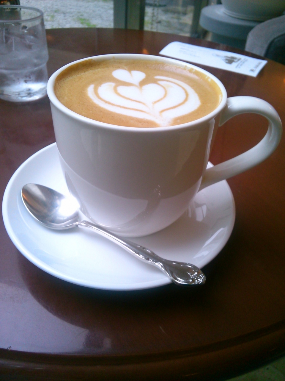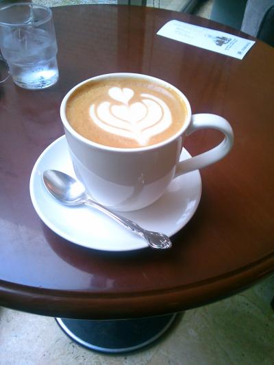 カフェラテ(450円)を注文。パッと飲んでパッと出ようと思ったのですが、来たコーヒーカップがデカ!