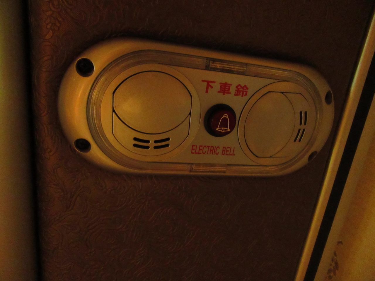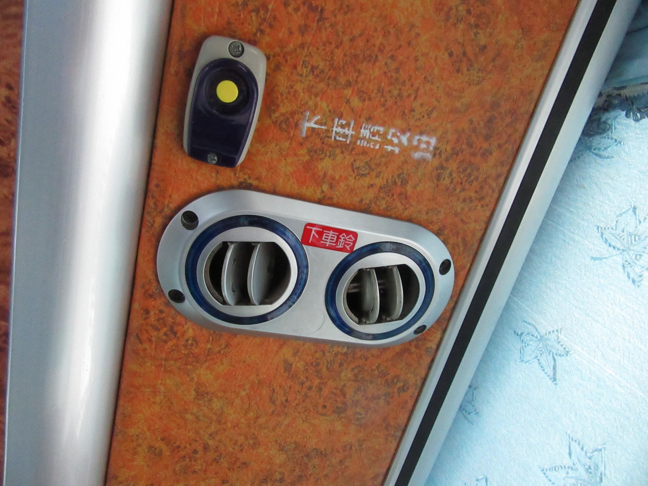 運転手が大きな声でアナウンス又は電光掲示版に次のバス停が表示されるので、頭上のエアコン吹き出し口付近のボタンを押して下さい。