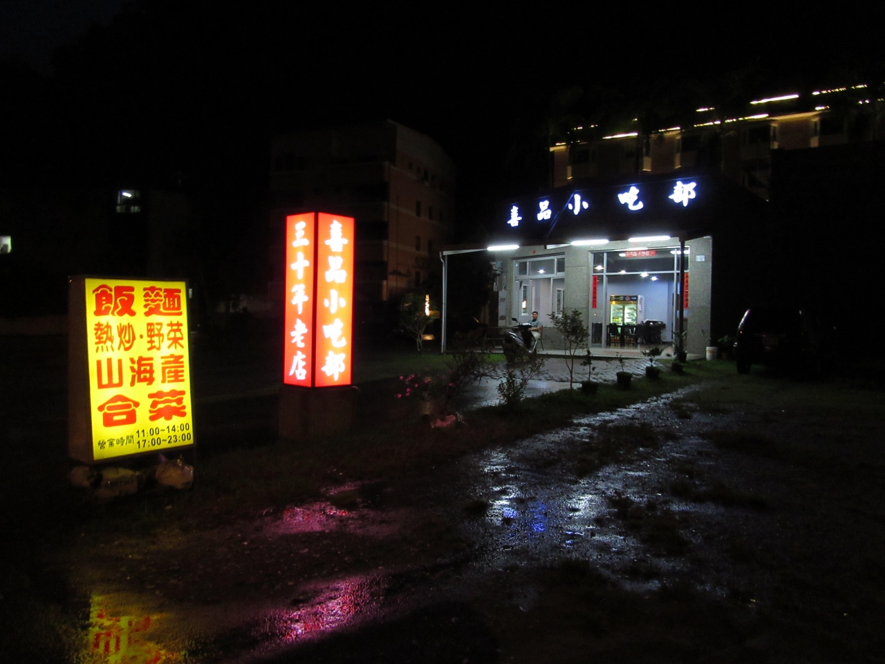 ホテル周辺にコンビニ2件、飲食店(小吃店、原住民料理店)、麓の崎仔頭バス停周辺にも飲食店があるので、食事には困らないと思います。