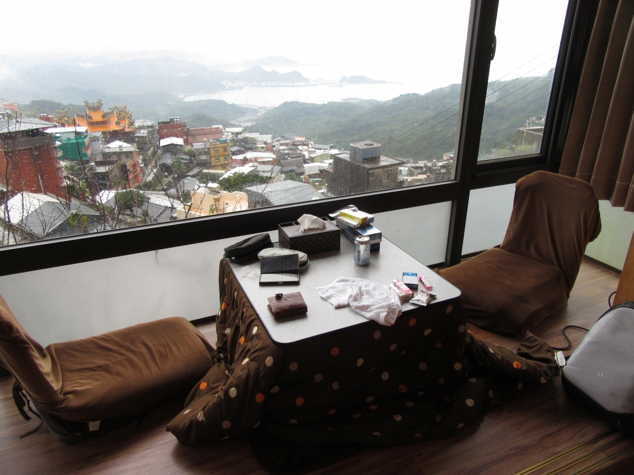 客室は10畳広縁付きで外の景色は甲府盆地の外輪山からちょこっと富士山が見えました。