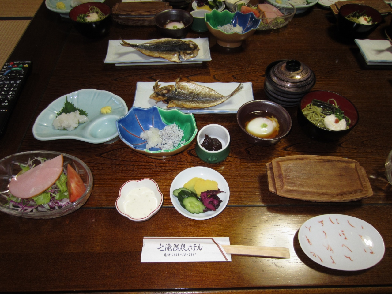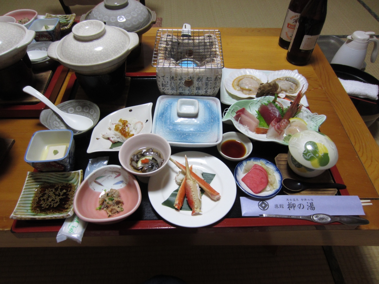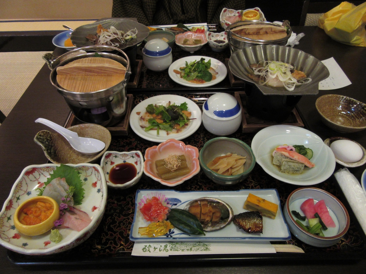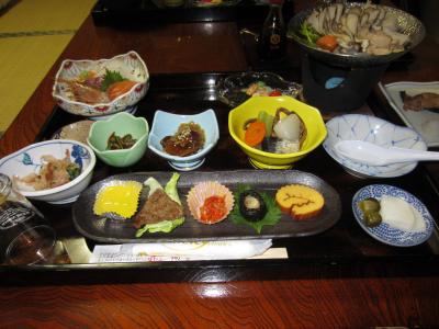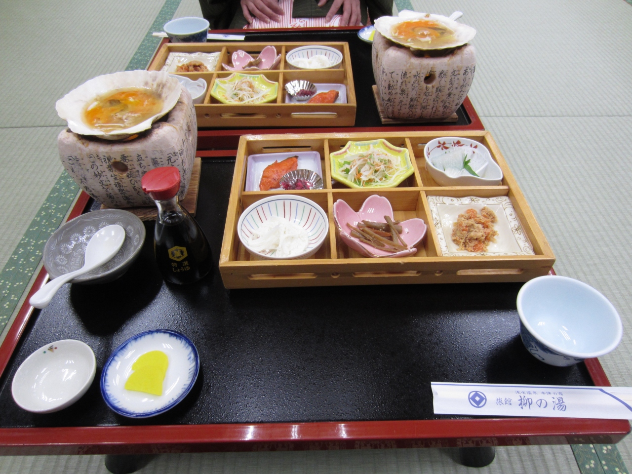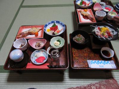 食事は、予約時に三種類の値段設定があるとのことで、一番高いプランを希望したら、食べきれないから安いので充分だよと言われ、中間の値段のプランにしましたが、その通りで食べきれないくらいに出てくるので食べ過ぎ注意です。朝食は、このあたりの名物、貝焼きみそが提供されご飯が進みました^^。
