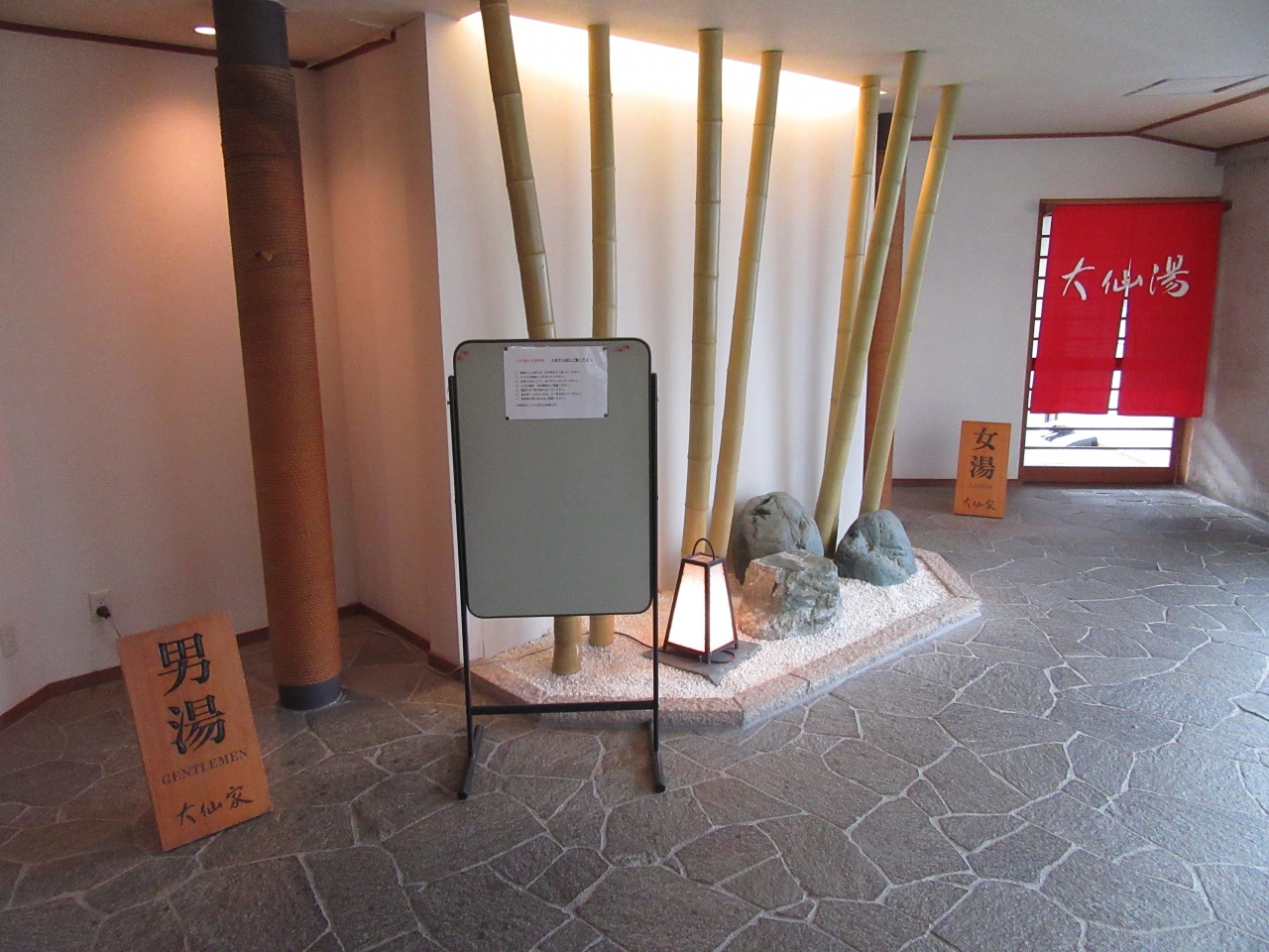 お風呂は日帰り温泉も受付しています。源泉かけ流しでお湯は激熱と聞いていたのですが、前に入った人が加水したのか?そうでもなかったです。お湯はあまり特徴のない単純泉でした。