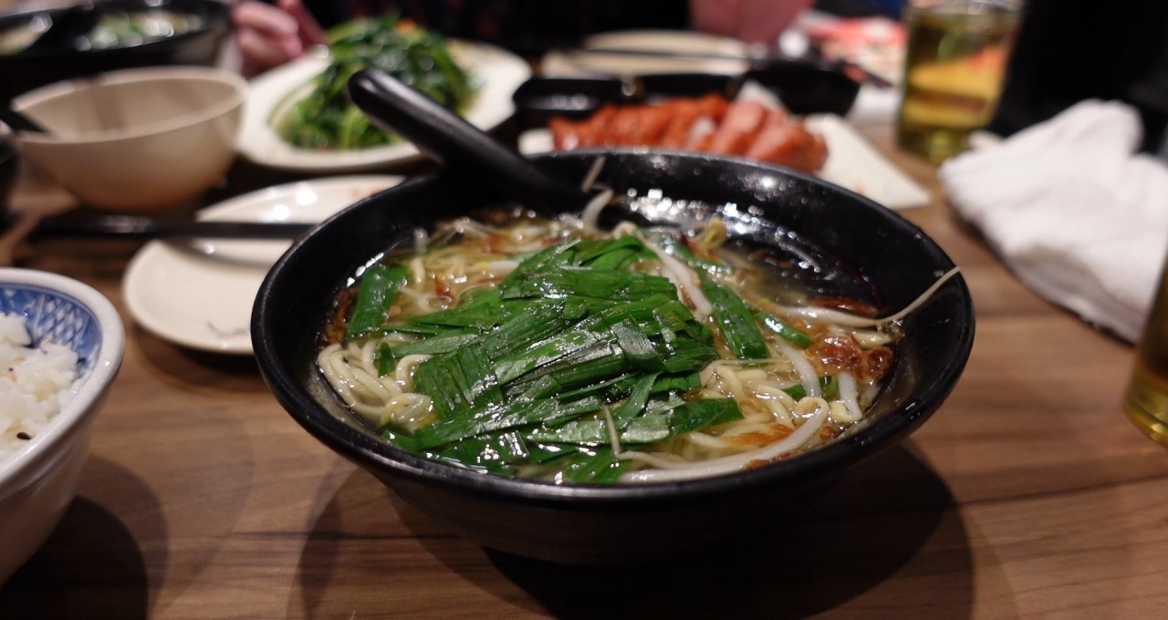 玉里麺(湯麺、乾麺)と魯肉飯、水餃子、茹青菜(燙青菜)、大腸を注文しました。