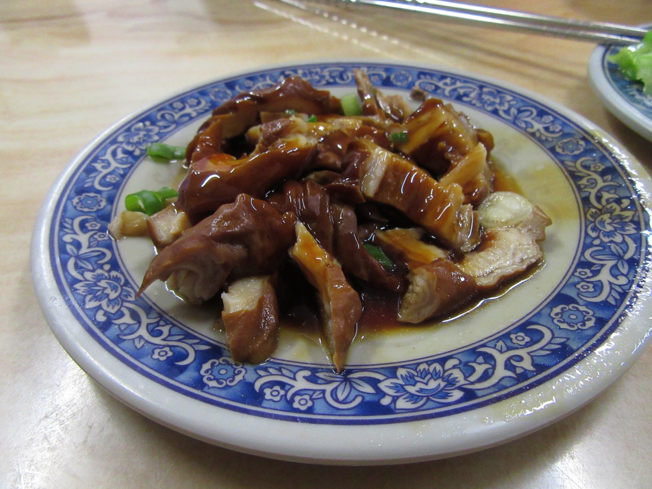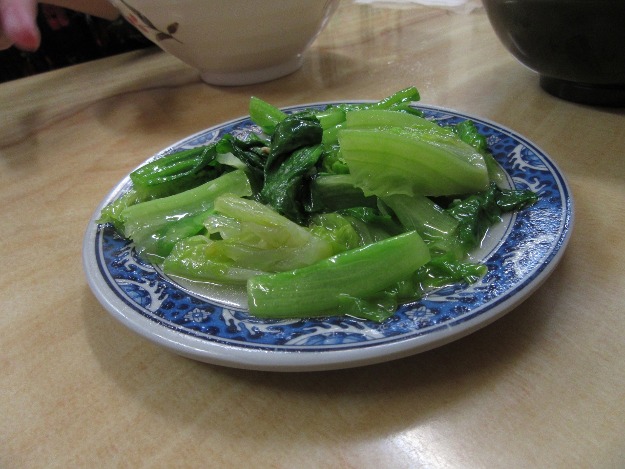 湯青菜、大腸のサイドメニューは小皿で付け合せで食べる感じで台湾の食堂でよくあるタイプのものでした。