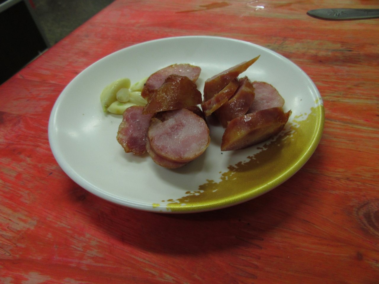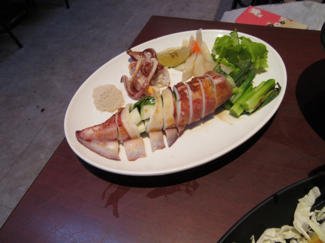 杏鮑香腸は、台南の熱炒で更に美味しい香腸を食べた後なので普通。以前は付け合せのニンニクが丁寧にスライスされて添えられていましたが、今はセルフ持ってくるシステムなので、丸まる一個かじりながら食しました。ニンニクが辛すぎて無理でした。(以前はニンニクそんなに辛く無かったのに)