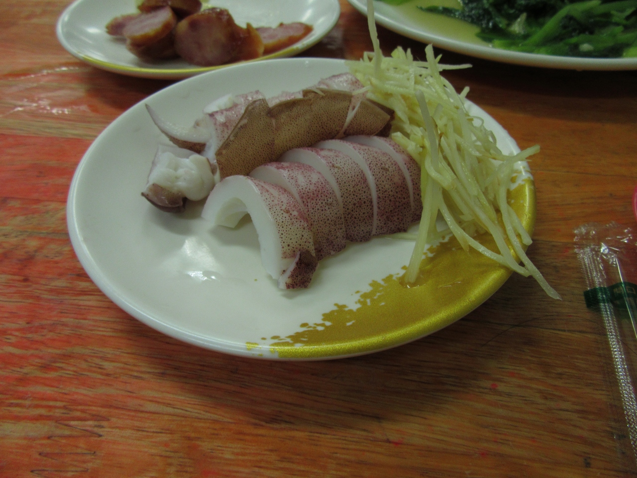 炒飯、香腸、茹で青菜、茹でスルメイカを注文しました。