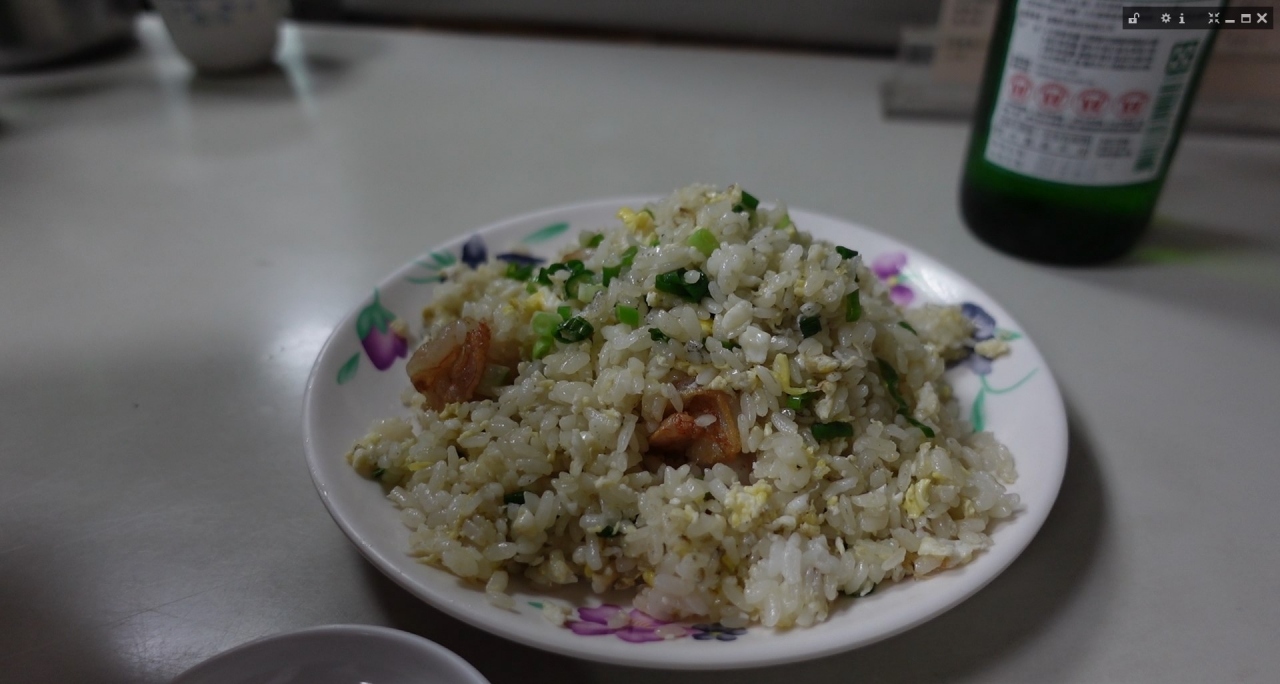 炒飯はパラパラでしっかりした味付けで旨し!。香腸(台湾ソーセージ)もジューシーでビールのお供に最適です。茹でスルメイカは、わさび醤油で頂く日式でプリプリで大変美味でした。