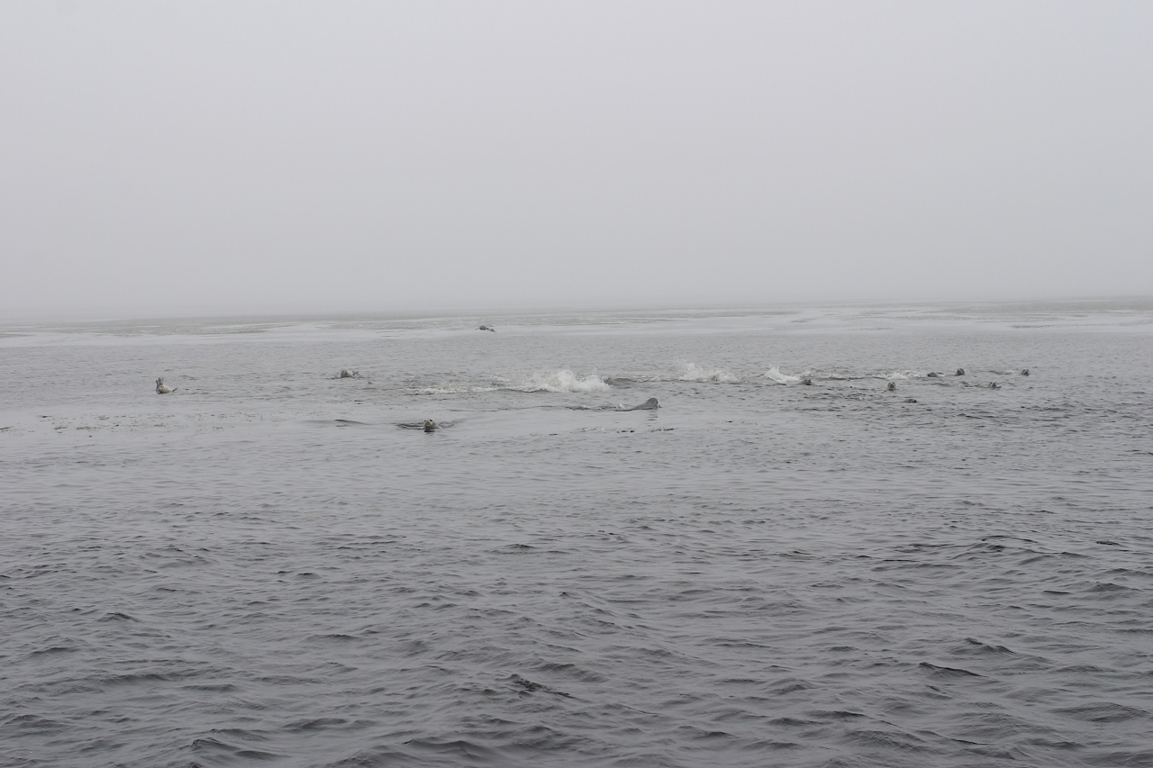 途中ゴマフアザラシの生息地の浅瀬付近に寄り、船を停船して見学できました。