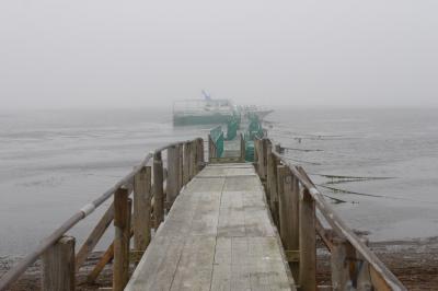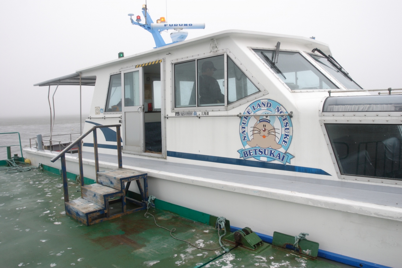お盆の時期にトドワラ行きの観光船に乗船しました。あいにくの悪天候で、他には乗客がおらず、貸し切りでした。