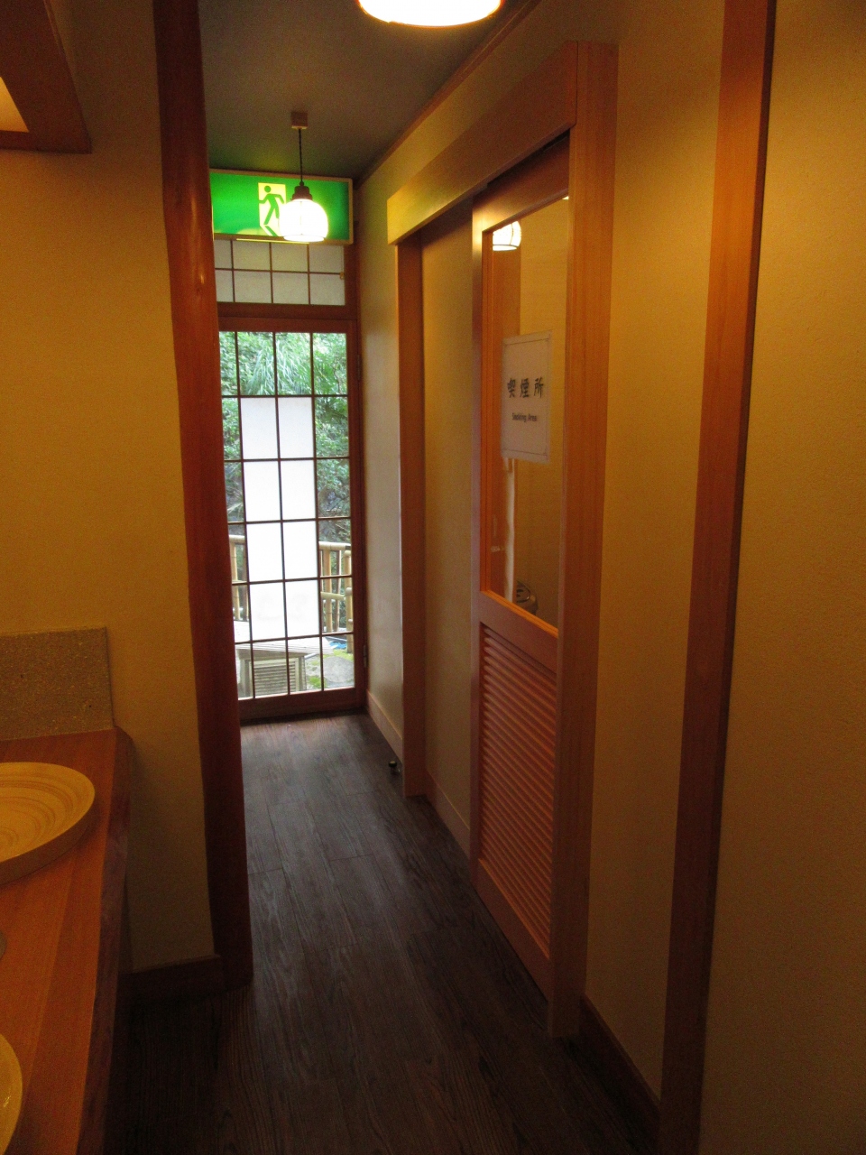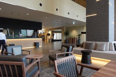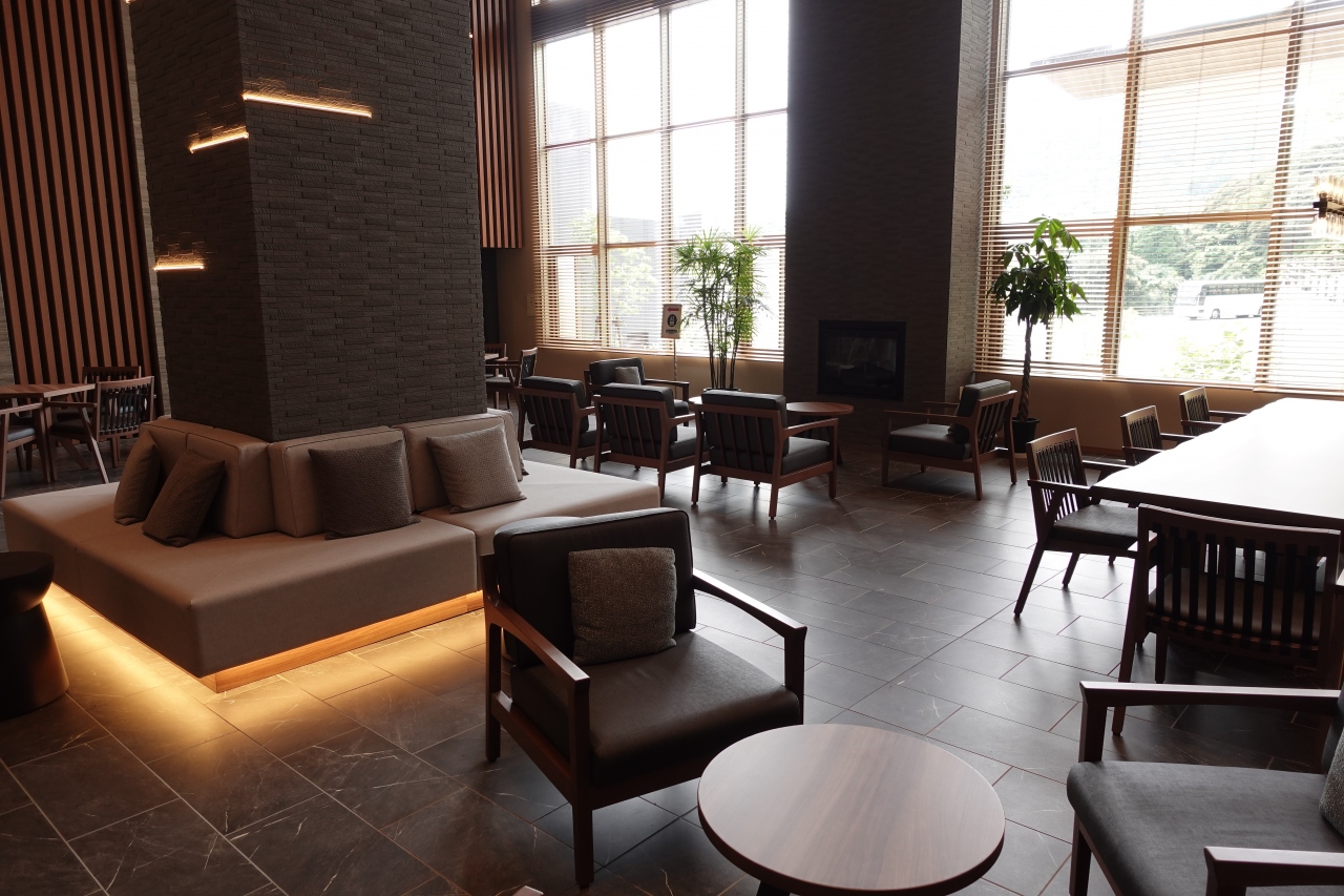 館内は国民宿舎時代の建物を改装していて、白木をふんだんに使った落ち着いた内装で、食事処、ロビー、レストラン全て素晴らしい環境でした。玄関横の喫煙所も木の桟がはめ込まれた落ち着いた雰囲気で館内全体にセンスの良さが感じられました。
