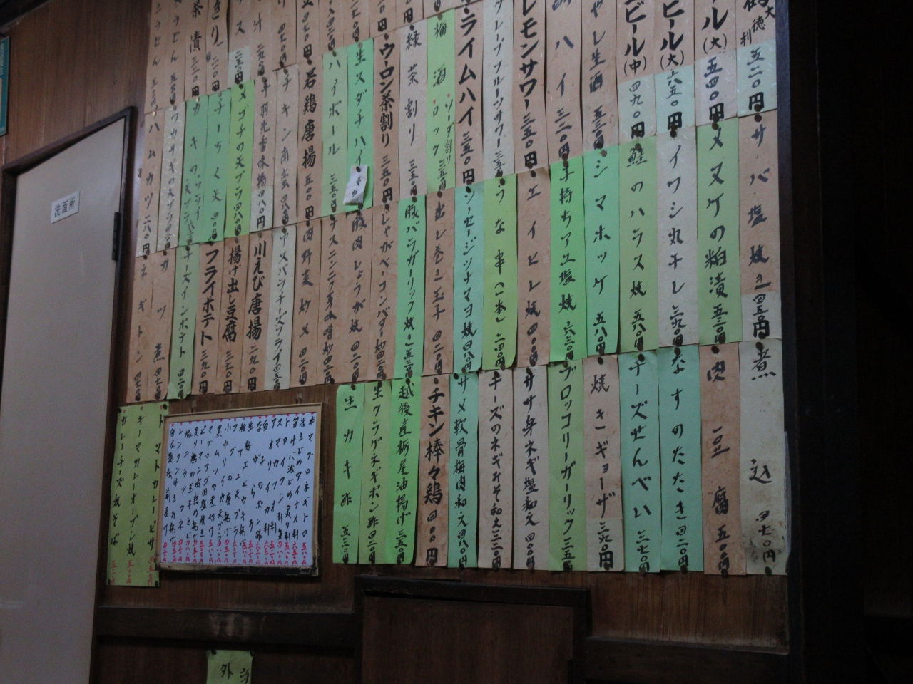話が脱線しましたが久々に訪れると、昭和で時が止まったかのような錯覚を覚えました。壁に貼り付けてある薄汚れたメニューを見て色々と注文。お味の方は美味しかったです。