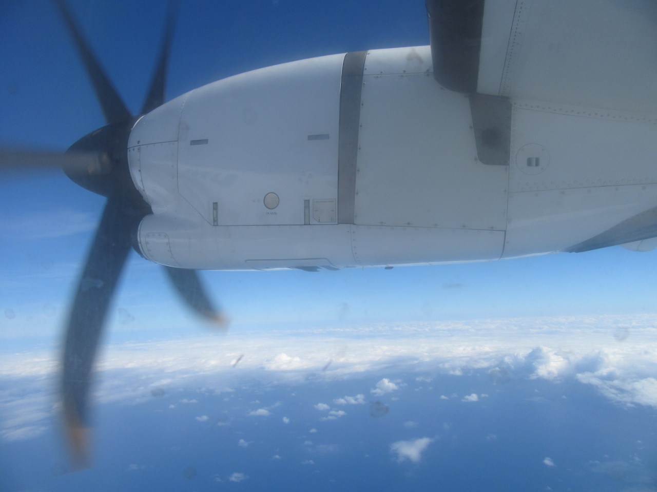 飛行機は双発のプロペラ機ですが座席は快適でした。カウンターの職員さんやキャビンアテンダントさんも親切で対応が良かったです。