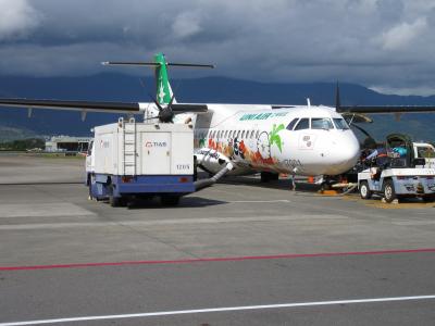 台湾東海岸は鉄道が慢性的に混雑して週末などはチケットが取りづらいとのことなので、早い時期から予約ができる航空機で移動しました。