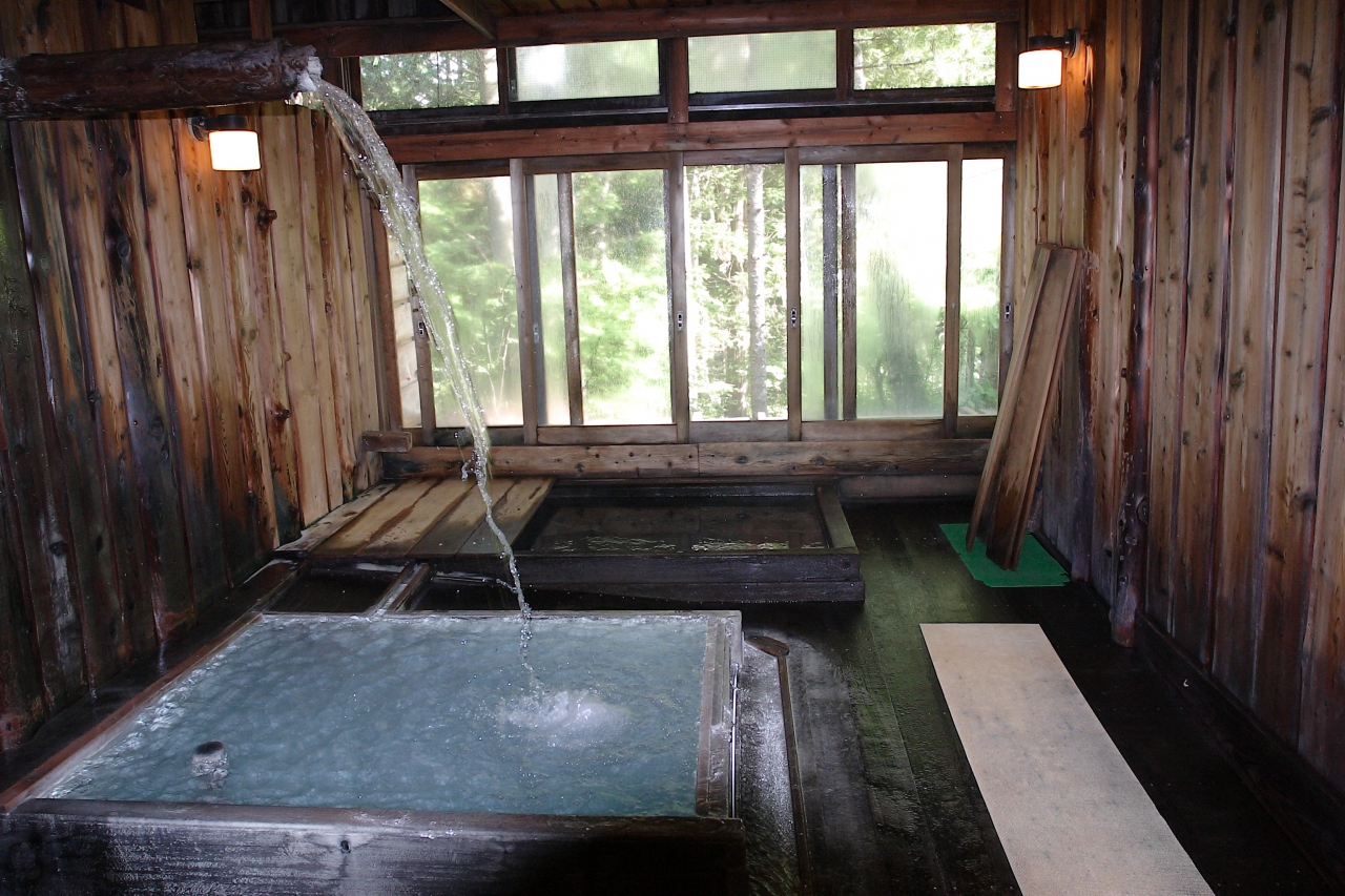 温泉はシャワーのある内湯(真湯のみ)、半露天となっている森の湯、冷泉の信玄の薬湯の三種類の湯船が楽しめます。中でも信玄の薬湯は冷泉で、打たせ湯となっており大量に掛け流されています。最初は冷たさに入るのに躊躇しましたが、一回入ると病みつきになり薬湯を沸かした湯船と交互浴すると、どっと疲れが出ますが入った後の爽快感はたまりませんでした。