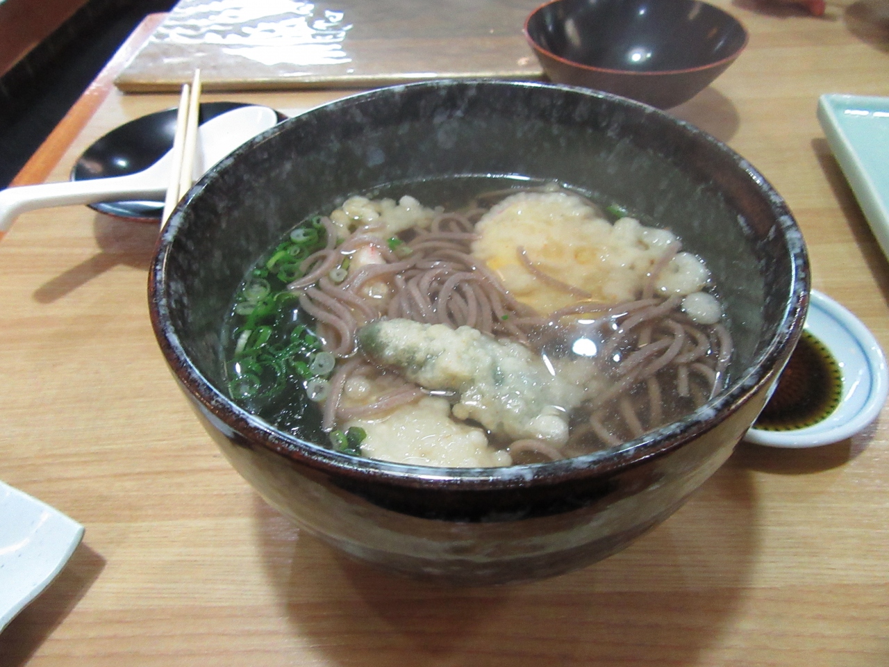 蕎麦と鉄火巻を注文しましたが、鉄火巻の作りが雑でした。蕎麦は期待していなかったのですが、関西風の出汁とよく合い美味しかったのは嬉しい誤算でした。サンマ寿司は普通かな。- 旅行時期