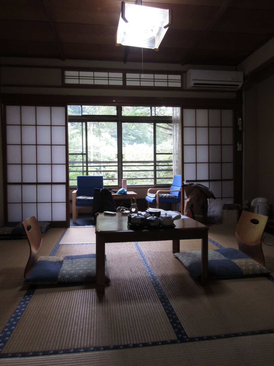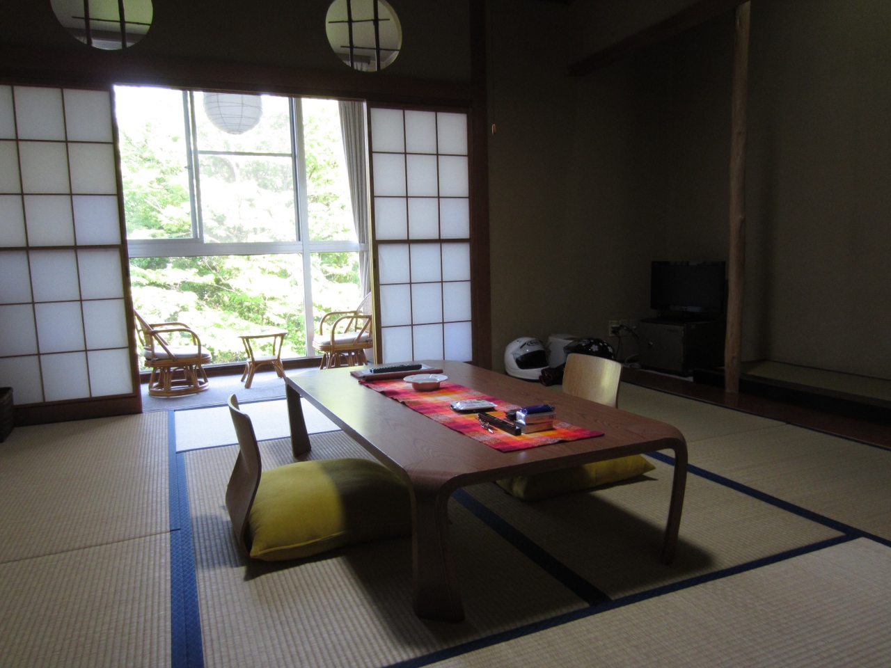 客室は街道沿いの部屋を用意していただきました。昼間は観光客で賑やかですが、夕方になると昼間の喧騒が嘘のように静かになりました。設備ですが部屋には冷蔵庫が無いのが辛いです。一階の帳場にショーケースがあり、ビールを含め飲み物は販売しているのですが、購入できるのはフロントにスタッフが居る時間帯のみで、夜遅くは購入できません。門限もあり、近くの自販機まで行くわけにもいかず、風呂上がりに部屋に戻り冷たいビールできゅっといった具合には出来ないのが残念でした。